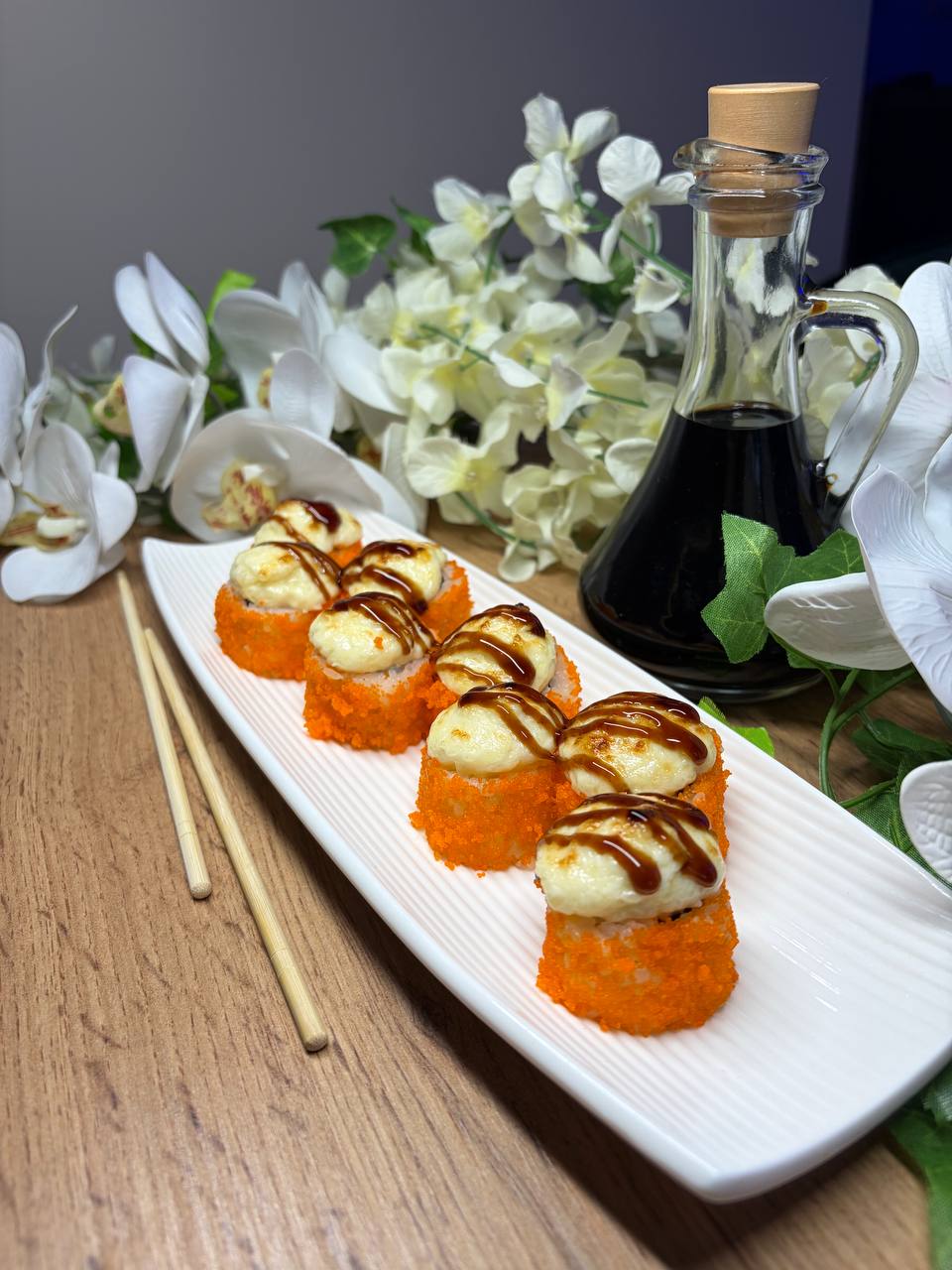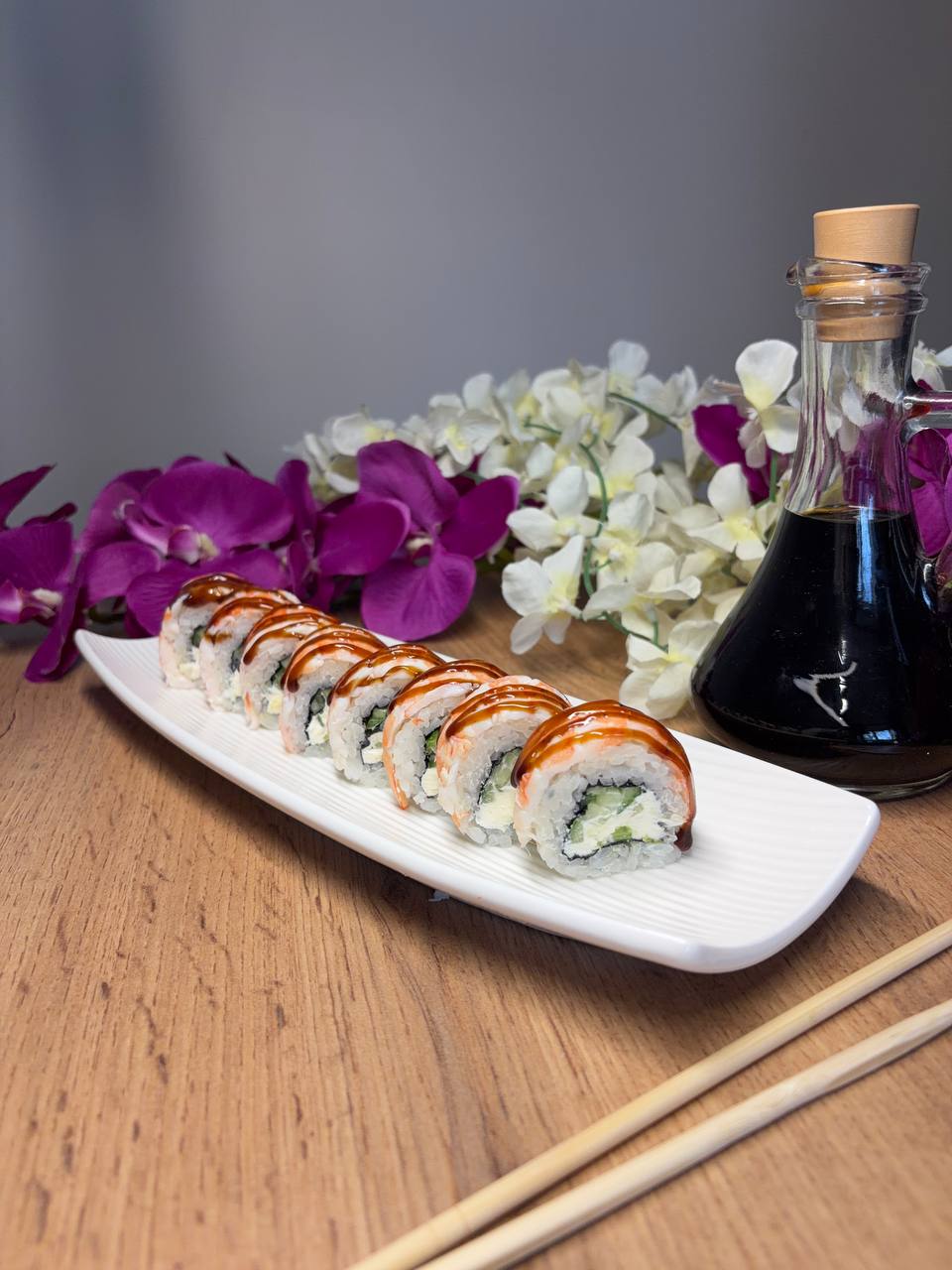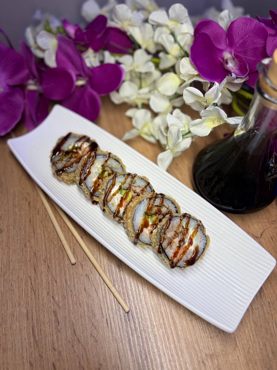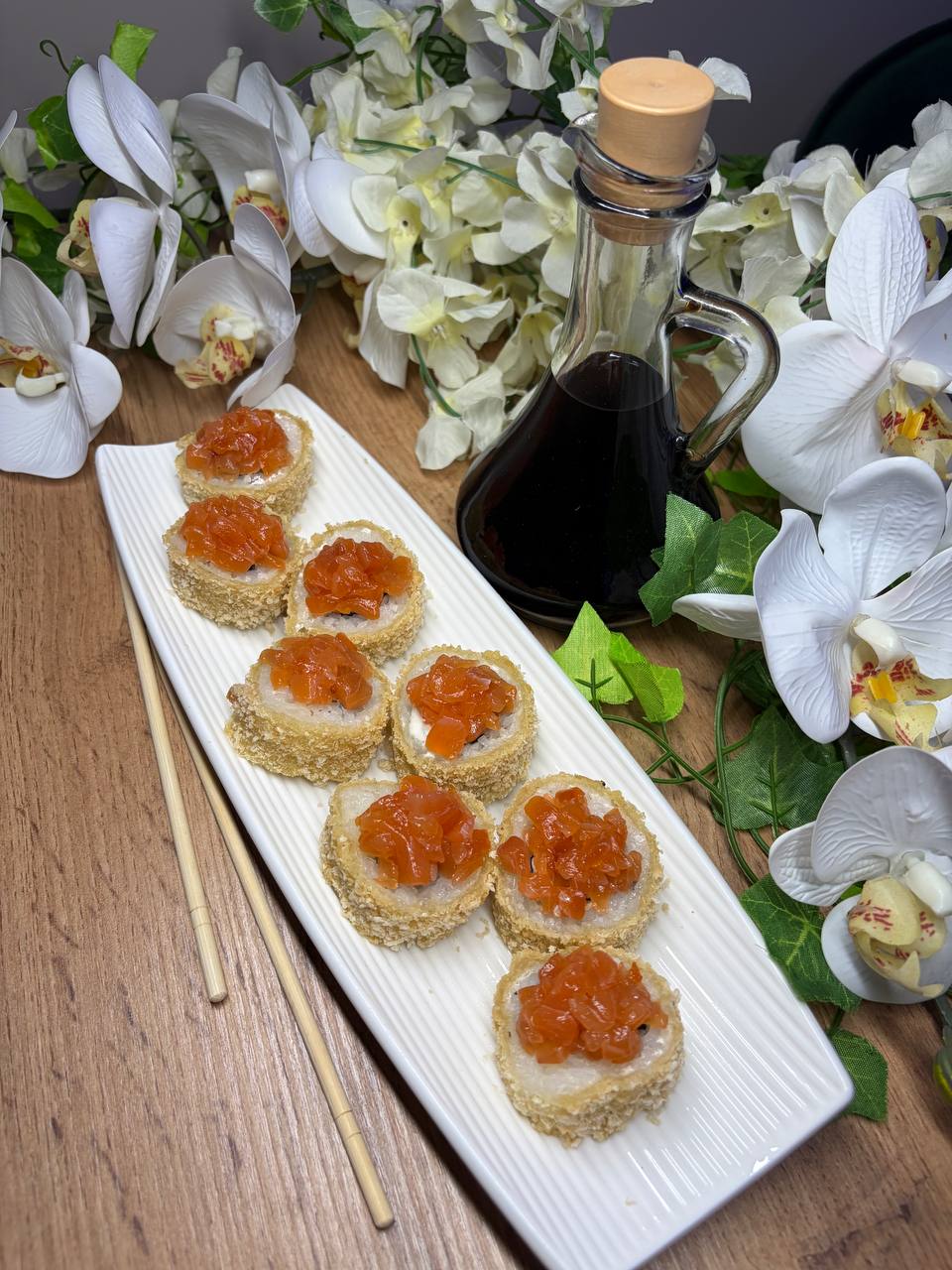 Темпура з теріякі лососем та креветкою