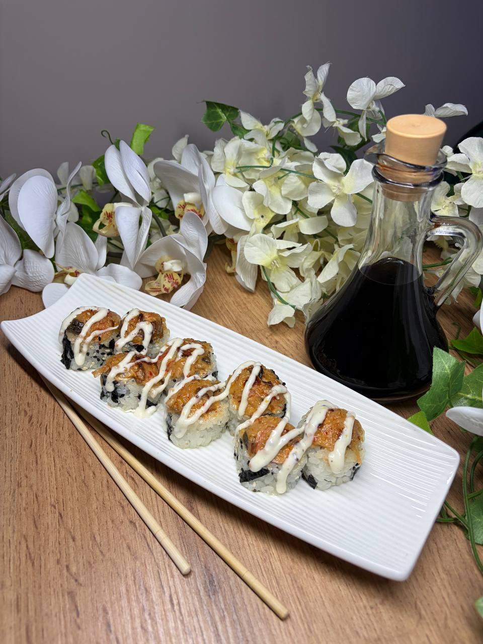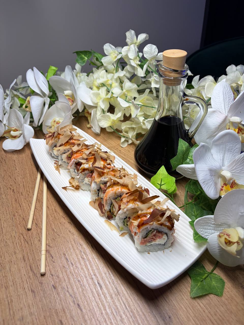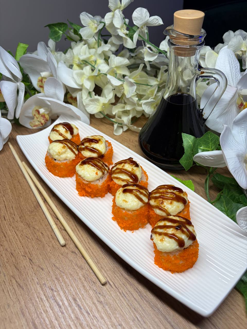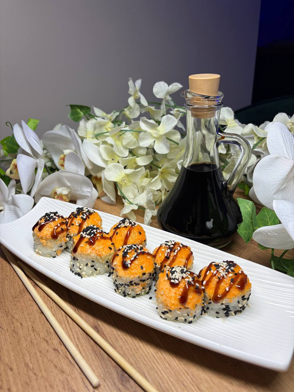 Темпура з теріякі лососем та креветкою