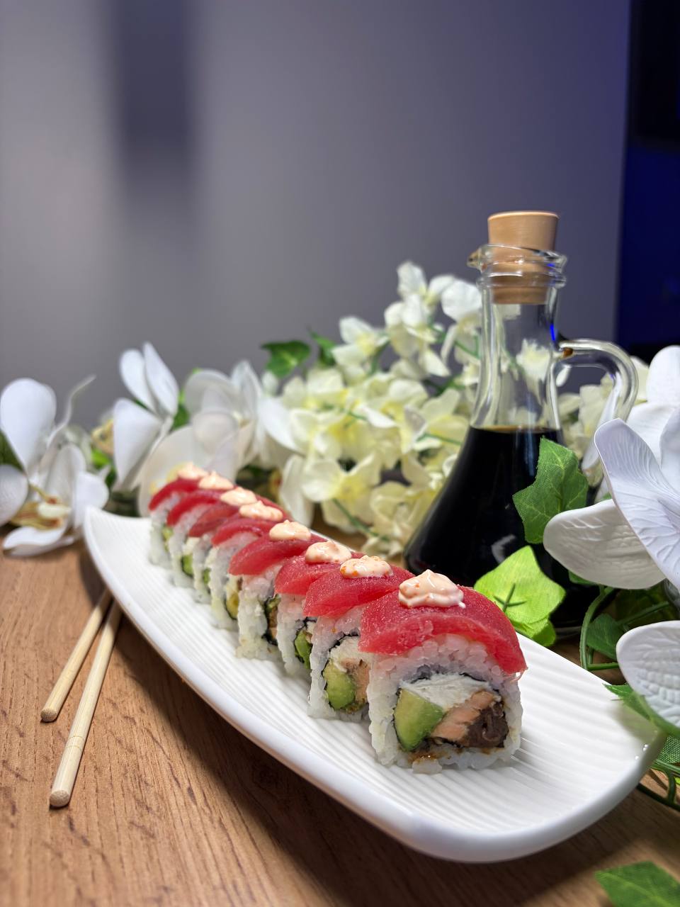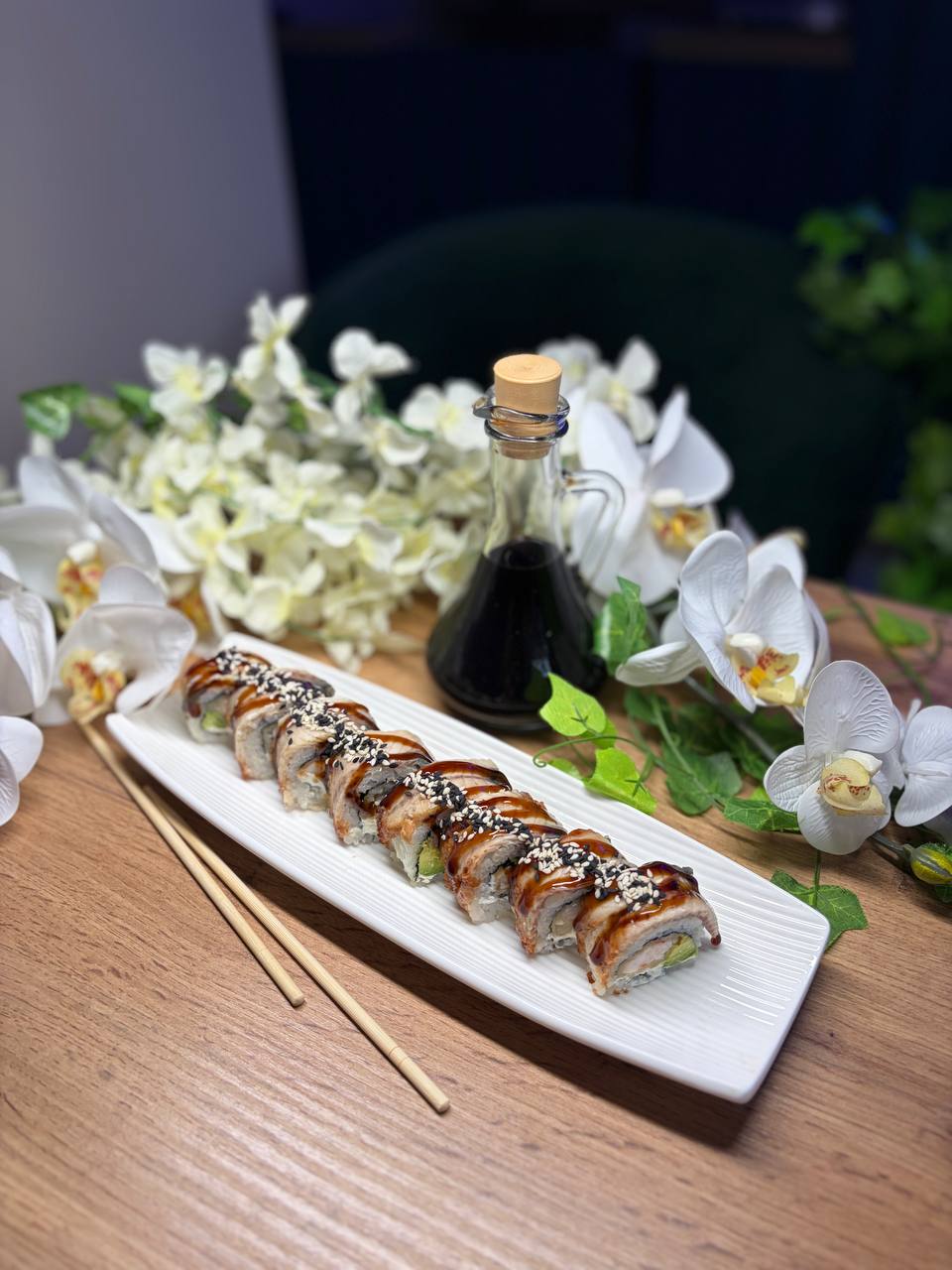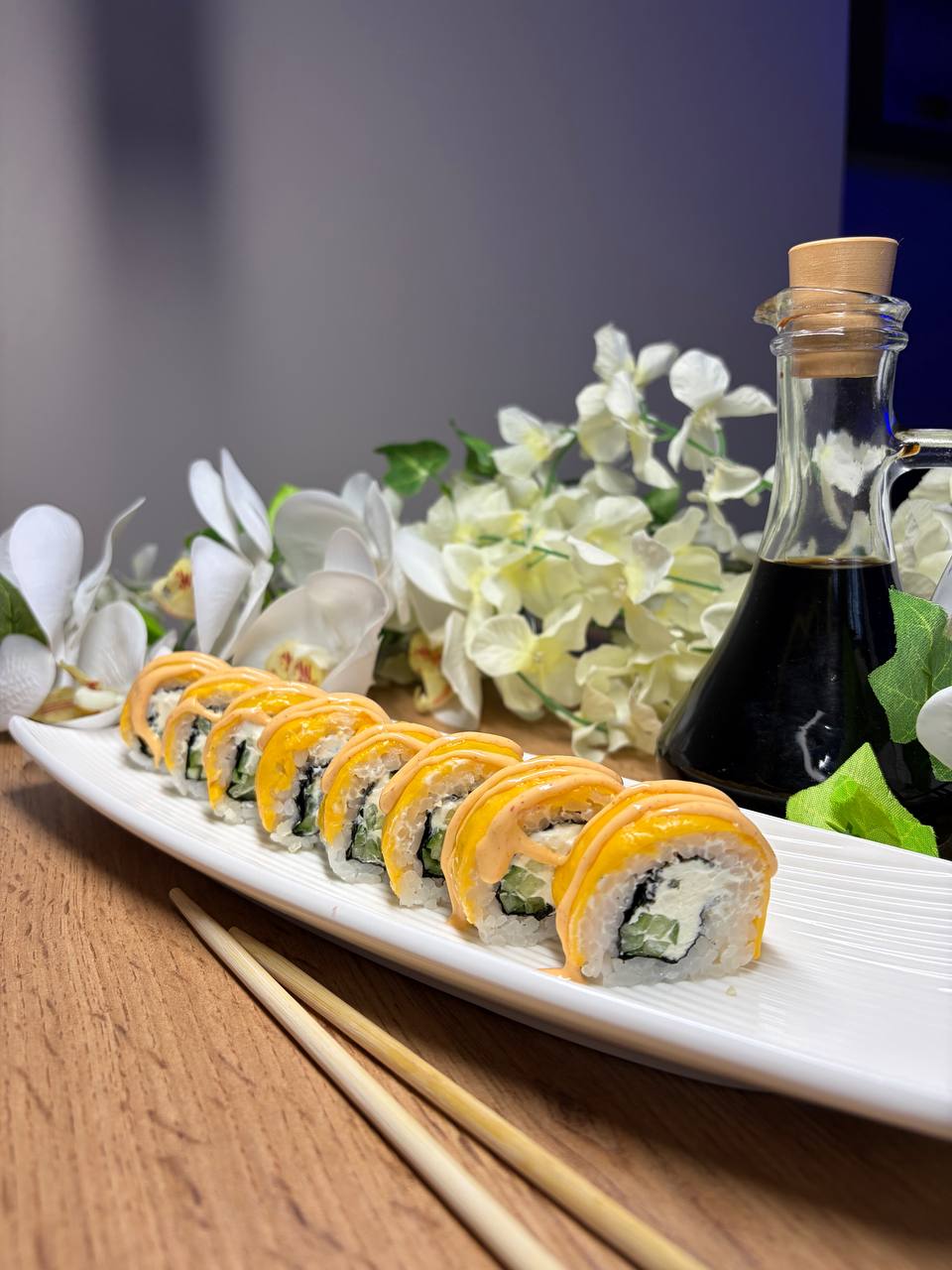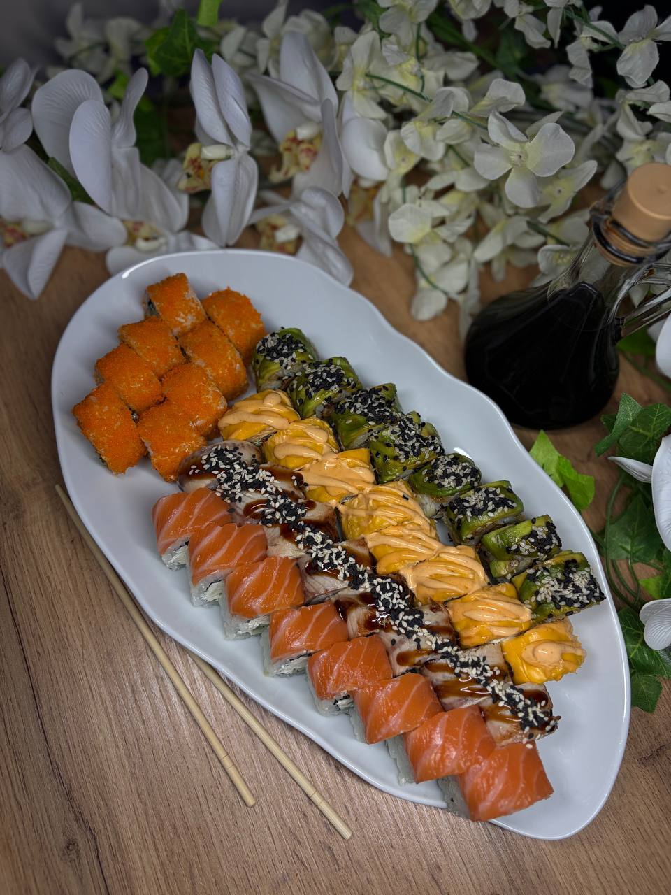 Темпура з теріякі лососем та креветкою