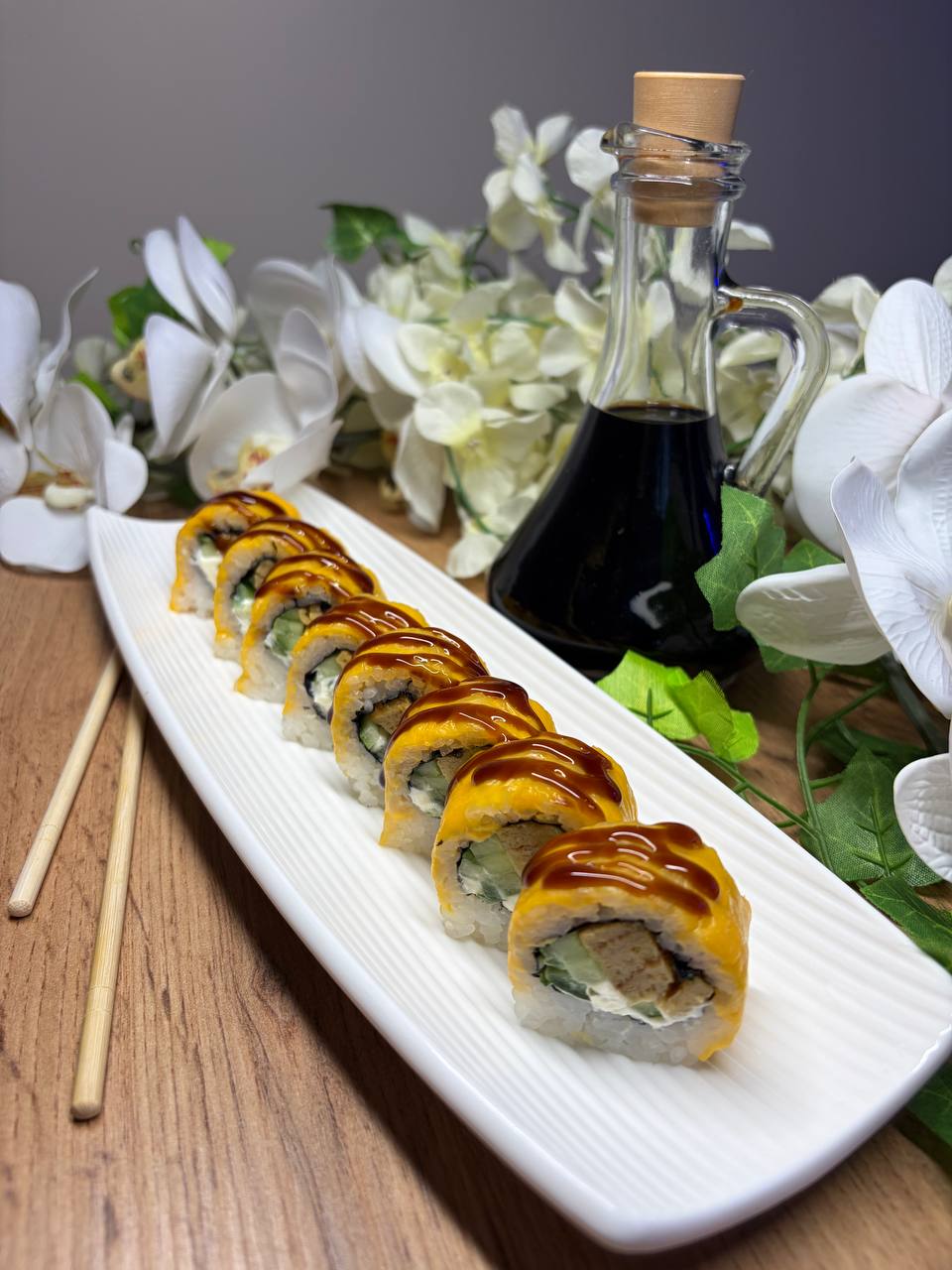 Рол з креветкою темпура та чеддером